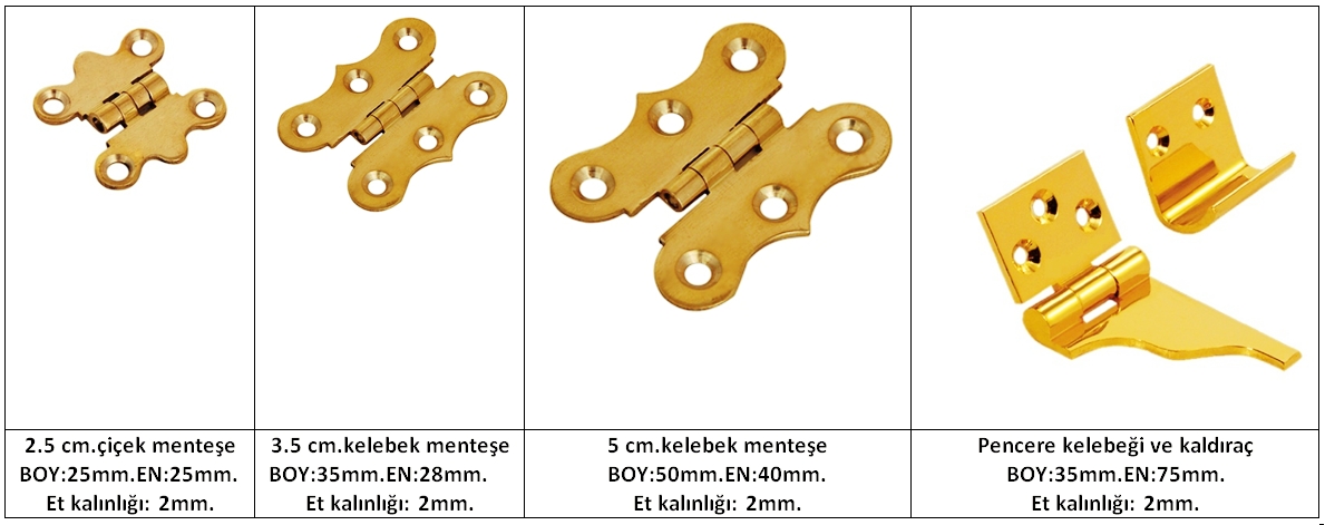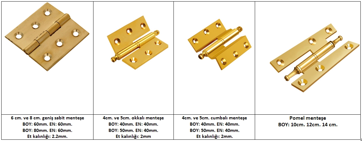Pirinç Sabit Menteşeler – Kapı Menteşeleri – Sürgüler